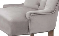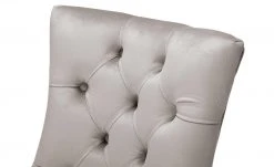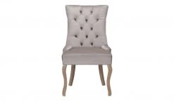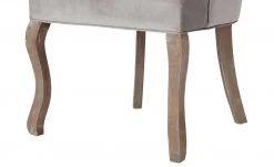 Mit dem Polsterstuhl Felicita zieht ein angesagtes It-Piece bei Ihnen ein. Der Stuhl ist Teil von Höffners erster exklusiver Bloggerkollektion, die in Zusammenarbeit mit der erfolgreichen Influencerin Cita Maass entwickelt worden ist. Felicita hat einen glamourösen Vintage-Look. Vor allem die Steppung im Chesterfield-Stil ist ein Eyecatcher. Sitz und Rücken sind mit einem grauen Samtstoff bezogen. Der feine Glanz lässt die Bezugsfarbe noch edler wirken. Zwei kleine Armlehnen verbinden Rückenlehne und Sitzkissen miteinander. Die vier geschwungenen Stuhlbeine sind aus massivem Gummibaum gefertigt. Auf der Rückseite der Lehne befindet sich ein Hängegriff aus Metall, der als Deko dient und beim Hervorziehen des Stuhls hilft.