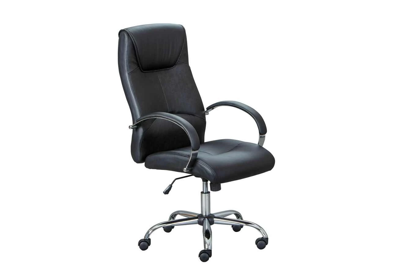 Dieser Drehstuhl passt mit seinem schwarzen Kunstlederbezug und dem verchromten Gestell zu nahezu allen Schreibtisch-Stilen. Platzieren Sie ihn im Arbeits-, Kinder- oder Jugendzimmer: Der Drehstuhl ist vielseitig einsetzbar. Dank des seitlichen Griffs lässt sich die Sitzhöhe kinderleicht zwischen 46 und 52 Zentimeter verstellen.