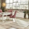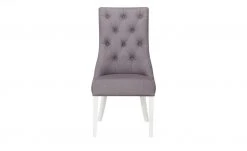 Luftig, leichter Landhaus-Charme verströmt der Polsterstuhl Cap Ferrat Two. Die hohe Rückenlehne ist rautenförmig im Chesterfield-Stil gesteppt und elegant geschwungen. Dekorative Zierknöpfe unterstreichen das französische Landhaus-Flair und bringen den fein strukturierten Webstoff besonders gut zur Geltung. Der sanfte Pastellton bildet dabei einen edlen Kontrast zu den weiß lackierten Füßen aus massivem Buchenholz. Die hinteren Füße sind elegant geschwungen und lassen den gesamten Stuhl einladend und gemütlich erscheinen. Angedeutete Armlehnen verleihen dem Polsterstuhl zusätzlich eine nostalgische Note.