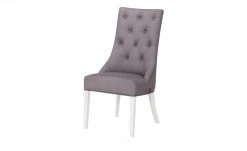 Luftig, leichter Landhaus-Charme verströmt der Polsterstuhl Cap Ferrat Two. Die hohe Rückenlehne ist rautenförmig im Chesterfield-Stil gesteppt und elegant geschwungen. Dekorative Zierknöpfe unterstreichen das französische Landhaus-Flair und bringen den fein strukturierten Webstoff besonders gut zur Geltung. Der sanfte Pastellton bildet dabei einen edlen Kontrast zu den weiß lackierten Füßen aus massivem Buchenholz. Die hinteren Füße sind elegant geschwungen und lassen den gesamten Stuhl einladend und gemütlich erscheinen. Angedeutete Armlehnen verleihen dem Polsterstuhl zusätzlich eine nostalgische Note.
