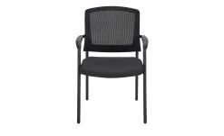 Umme ist ein praktischer Stuhl für Konferenzen und Meetings. Der Sitz ist weich gepolstert und der Rücken mit einem Netzstoff bespannt. Armlehnen zum Ablegen der Arme sind ebenfalls vorhanden. Für den stabilen Stand sorgt ein Gestell aus schwarzem Metall.