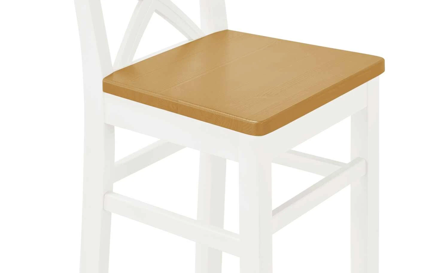 Florian ist die ideale Sitzgelegenheit für Tresen- und Bartische. Der Stuhl aus massiver Kiefer hat eine erhöhte Sitzfläche. Sie setzt sich farblich vom weißen Gestell und Rücken ab. Florian ist im Landhausstil gehalten – passend zu den anderen Möbeln der Serie.