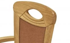 Der Polsterstuhl Multistar verfügt über ein klassisches, elegantes Design. Wahlweise verfügt der Stuhl über Armlehnen. Die hohe Rückenlehne ist am oberen Ende mit einem Griff ausgestattet. Multistar ist aus massiver Eiche gefertigt, die mit einem Öl behandelt worden ist. Sitzfläche und Teile der Rückenlehne sind weich gepolstert und mit Flachgewebe bezogen.