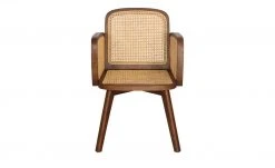 Die Serie Tweed Me entführt Sie in längst vergangene Zeiten und bringt Wiener Eleganz in Ihre vier Wände. Mit dem Rattanstuhl der Serie schaffen sie eine attraktive und komfortable Sitzgelegenheit: Egal, ob in Küche, Wohnzimmer oder Arbeitszimmer. Das dunkle Gestell aus massivem Mangoholz ist schön gemasert und zum Schutz lackiert. Es bildet einen farblichen Kontrast zu der hellen Sitzfläche und Rückenlehne. Diese bestehen aus natürlichem Rattan, welches sorgfältig zum kunstvollen Wiener Geflecht geflochten wurde. Machen Sie es sich bequem: Dank der Armlehnen in Komforthöhe lässt es sich schon fast wie auf einem Sessel sitzen.
