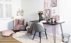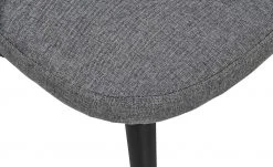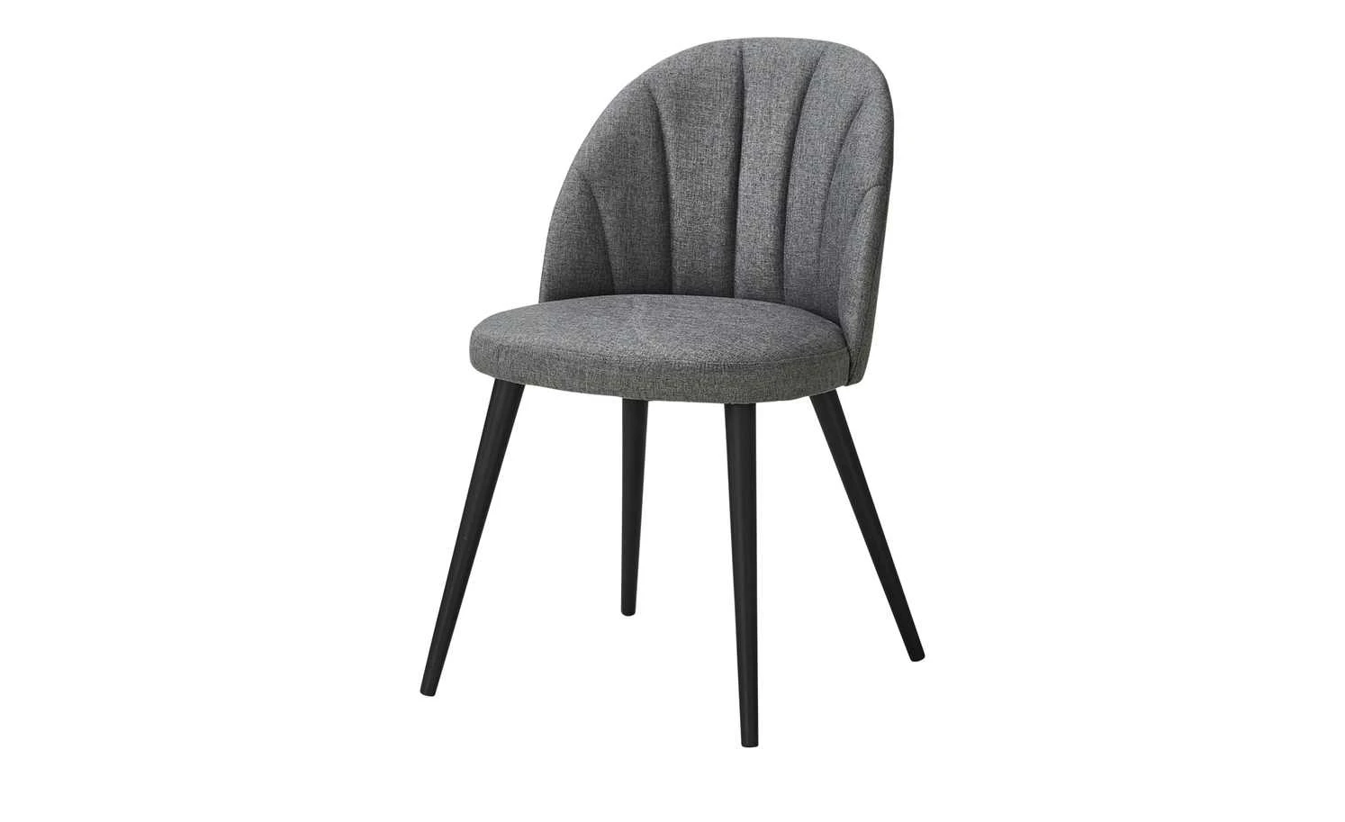 Der Polsterstuhl Domingo fügt sich in nahezu jeden Einrichtungsstil problemlos ein. Der dunkelgraue Bezug aus strapazierfähigem Webstoff ist an der Rückenlehne längs gesteppt. In Kombination mit den langen schwarzen Massivholzfüßen aus Buchenholz wirkt der Stuhl Domingo schlicht und modern zugleich. Für hohen Sitzkomfort sorgt die Schaumstoffpolsterung im Sitz- und Rückenbereich.