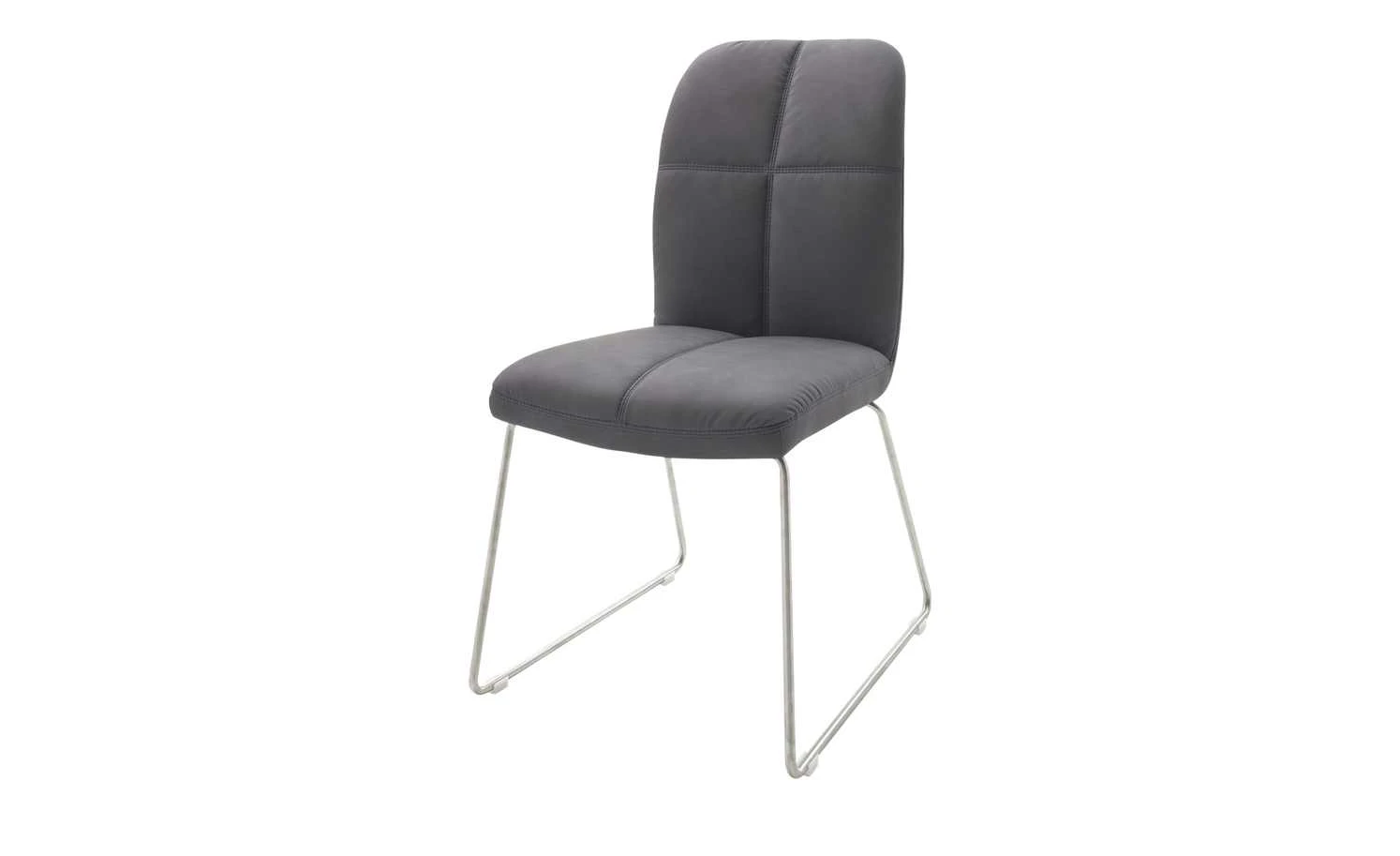 Der Kufenstuhl Sema überzeugt mit modernem Design, Qualität und Komfort. Die Sitzschale ist gemütlich mit Schaumstoff gepolstert – und das im Sitz- und Rückenbereich. Die Rückenlehne hat zudem eine angenehme Höhe, um sich gemütlich anzulehnen. Für den Bezug ist eine weiche, leicht strukturierte Mikrofaser verwendet worden. Sie ist im Sitz- und Rückenbereich dekorativ gesteppt. Das Gestell in Kufenform ist aus Metall gefertigt und sorgt für einen soliden Stand. Es ist mit kleinen Kunststoffgleitern versehen, die den Boden vor Kratzern schützen sollen.