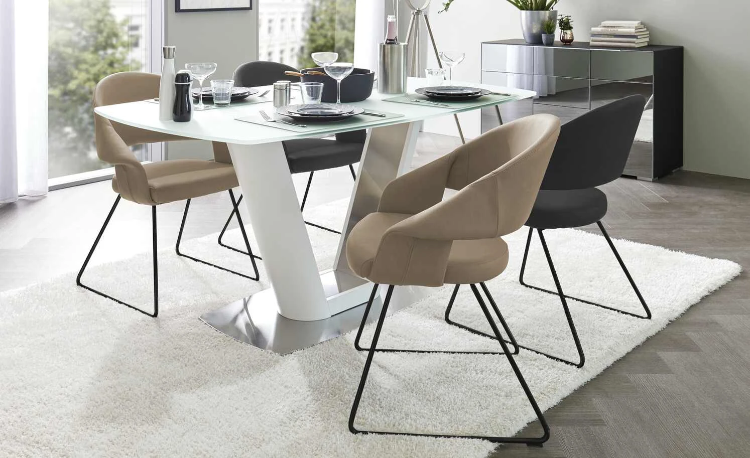 Neben seinem coolen Look, ist der Kufenstuhl Lena auch bequem. Sitz und Rückenlehne sind weich gepolstert – und mit Kunstleder bezogen. Das Gestell hat die Form von zwei Kufen. Dies wirkt filigran und ist trotzdem sehr stabil. Die geschwungene Optik der Sitzschale bringt frischen Wind in Ihr Speisezimmer.