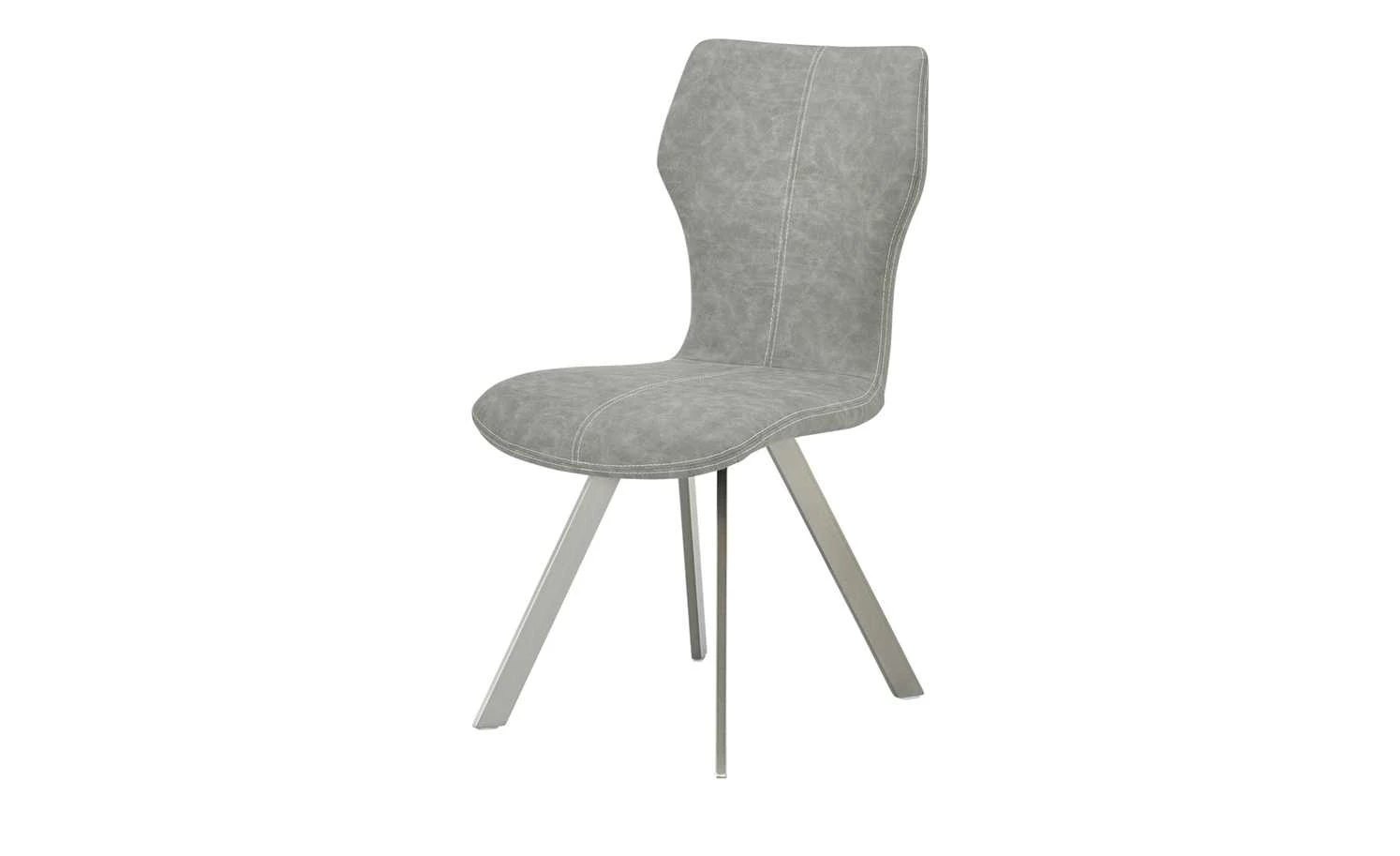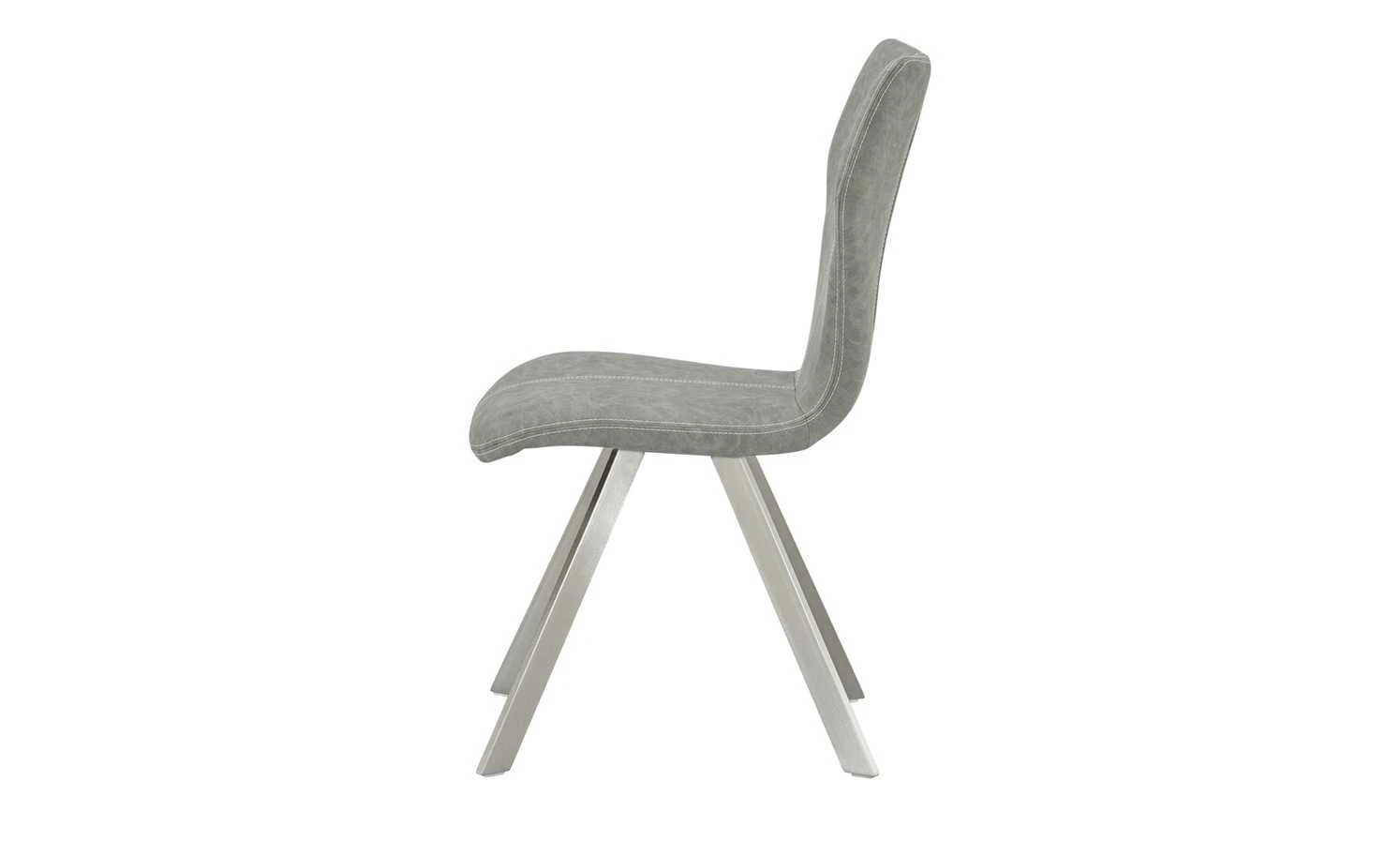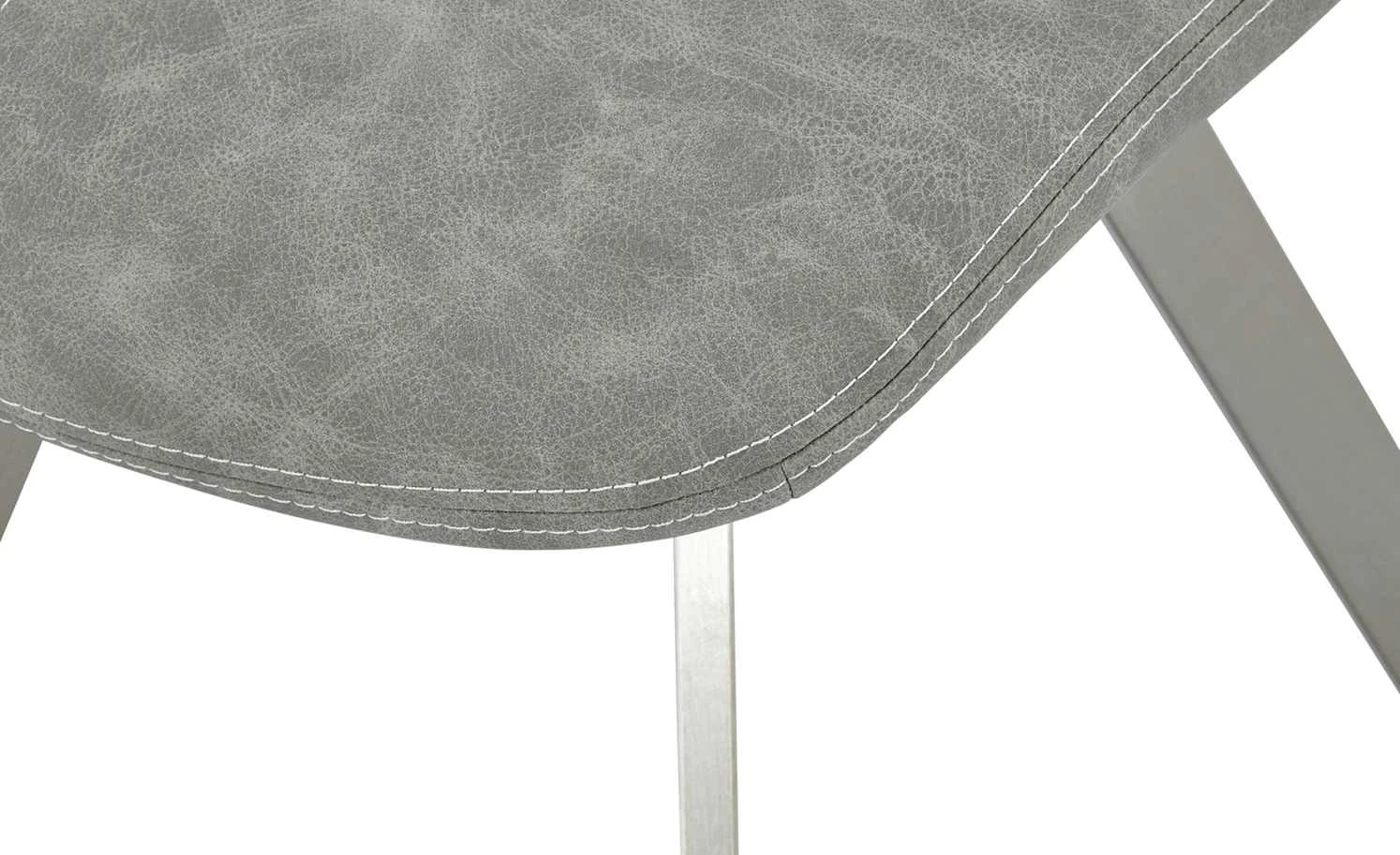 Ein Esstisch ohne Stühle? Weil das keinen Sinn macht, gibt es den Stuhl Denny. Es hat ein zeitlos-elegantes Design. Vor allem die Rückenlehne fällt mit ihrer besonderen Form ins Auge. Sitz und Rücken sind mit Kunstleder im Vintage-Look bezogen. Zusätzliche Akzente werden durch die weißen Ziernähte gesetzt. Das Gestell aus stabilem Edelstahl ist gebürstet. Dadurch setzt es glänzende Highlights.